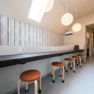 出町柳駅が最寄り駅となり、浄土寺のバス停から徒歩1分の場所にシェアハウスはあります。京都の文化的な雰囲気の漂う北白川エリアは落ち着いた雰囲気で、四季折々の暮らしを楽しめます。 京都市内の移動は、バスと自転車が便利。人気の烏丸・河原町エリアまでバスで約15分。フットワークの良い自転車なら約20分。京都大学/京都芸術大学まで約10分(自転車)。通学・通勤にも便利な場所です。
