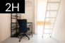 このように個室面積すべてを「個人の居住スペース」として使えるシェアハウスですが、フラットボレロ浄土寺では、さらに間取りを1.5階分の天井高(約4m)、全室ロフト付き(中2階のベッドスペース)としました。寝室と居住スペースを分けることで、お部屋をすっきり使えます。シンプルな生活スタイルの方にはお勧めです。